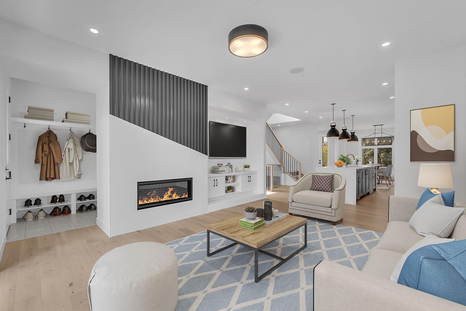 Luxury Interiors – Custom-built fireplace, sleek black accents, and designer lighting set the perfect ambiance.