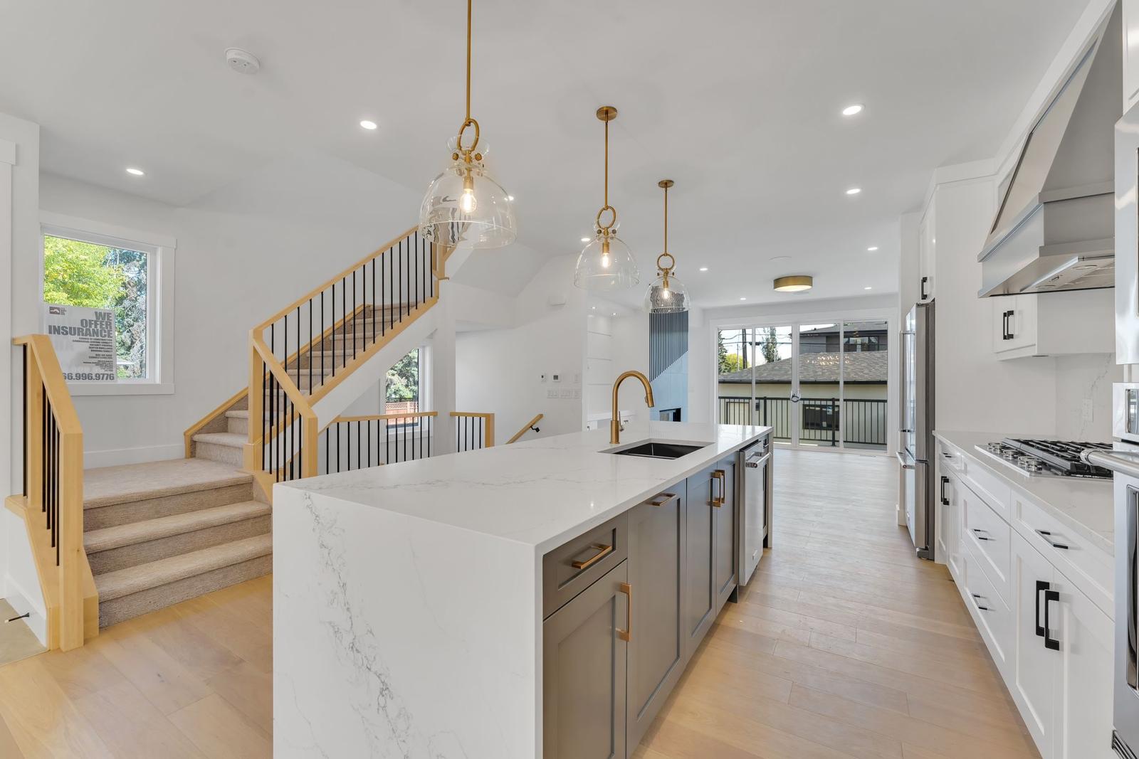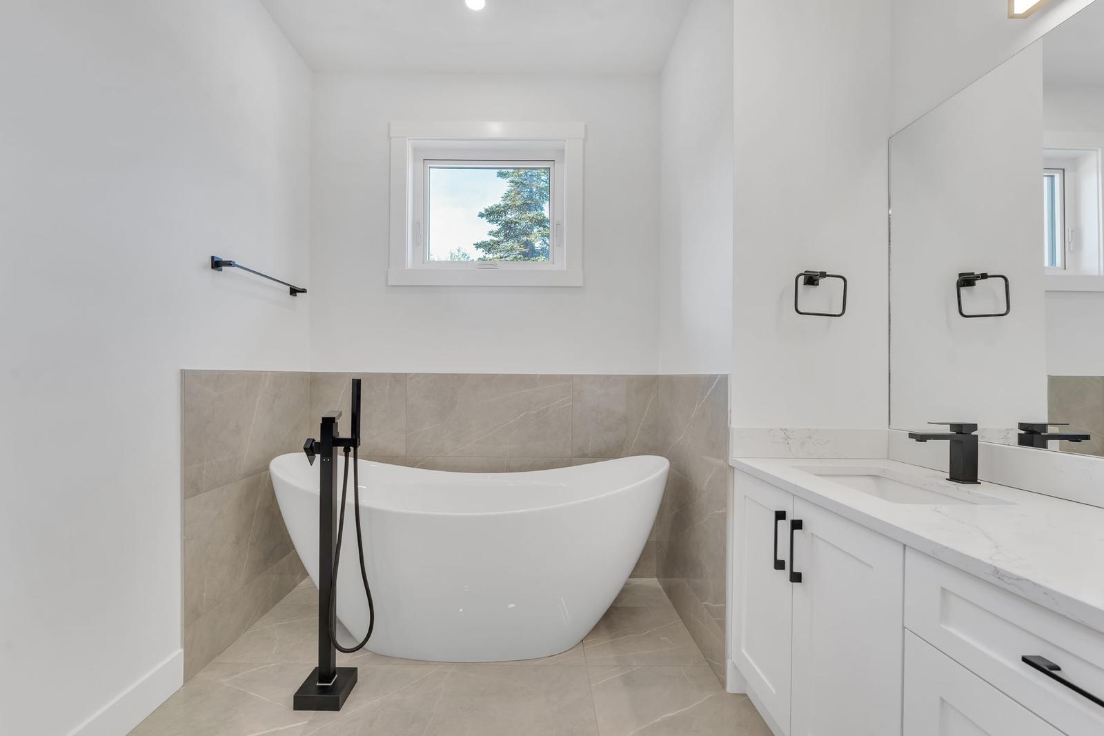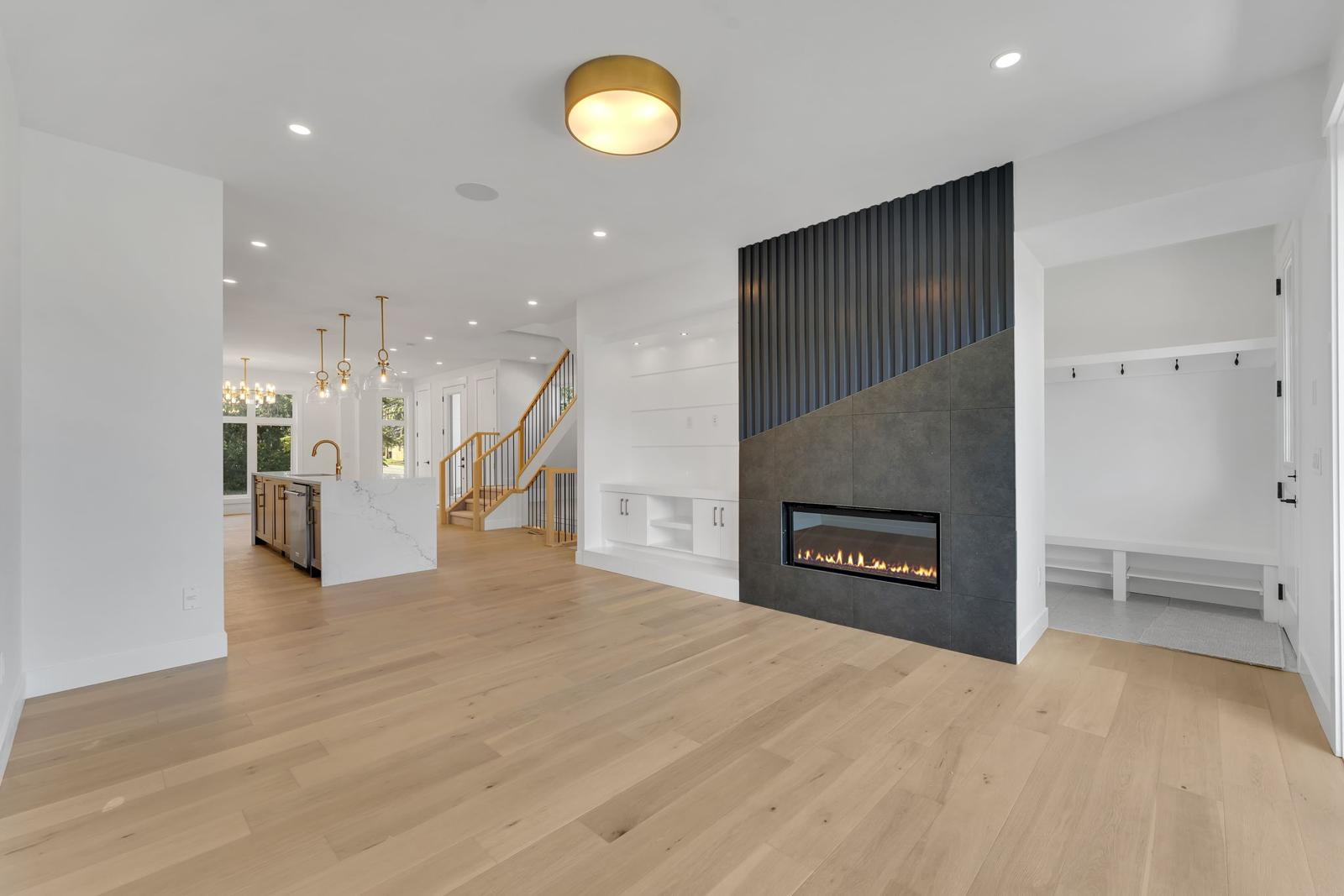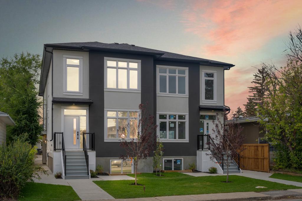 The Rosscarrock Duplex is a contemporary masterpiece that offers both luxury and practicality in one. Its sleek exterior with large windows welcomes an abundance of natural light, creating an airy and inviting atmosphere throughout. The open-concept main floor boasts a gourmet kitchen with premium appliances, a spacious island for casual dining, and modern pendant lighting to complement the clean lines of the design. The cozy living room features a stunning linear fireplace that serves as the centerpiece of the space, adding warmth and sophistication. Upstairs, the bedrooms are designed with relaxation in mind, and the master suite includes a spa-like ensuite, complete with a freestanding tub and elegant finishes. Located in a prime neighborhood, this home offers easy access to parks, schools, and shopping, making it perfect for families and professionals alike.